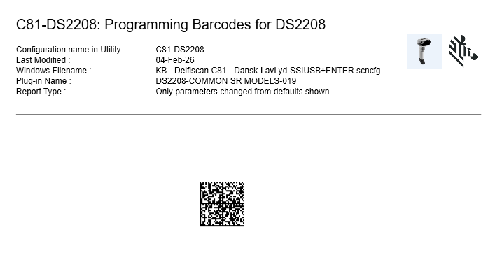 Du kan hente PDF’en her (officiel Zebra-manual): “LS2208 Product Reference Guide” - Find kapitlet “Default Parameters” og scan "Set Defaults".