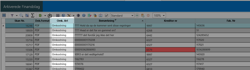Den kan ses inde under et enkelt bilag, så ALT+F5 på skanningsnummer fra en post, eller dobbeltklik ind fra fx kreditor.