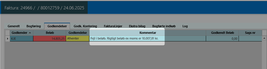 Den er tænkt brugt når man kigger på aktive bilag for at se om den AKTIVE godkender har angivet en kommentar.