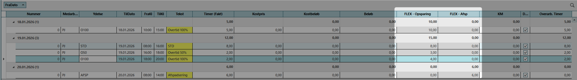 - OverArb100 - Overarbejde med +100% timer i FLEXBANK