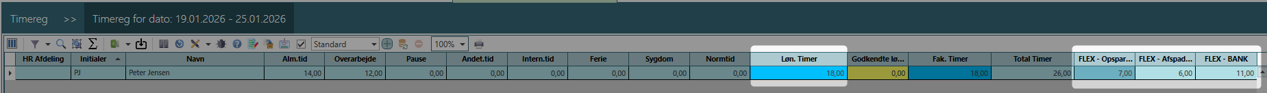 I første omgang arbejder jeg med dem der har FLEX timer i BANK.