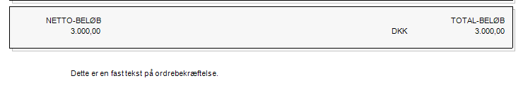 Hvis vi tager udgangspunkt i en ordrebekræftelse (tredje fane fra venstre på ovenstående billlede), kan man skrive sin tekst og herefter udskrive en ordrebekræftelse, hvorefter man vil se, ens faste tekst har placeret sig i bunden: