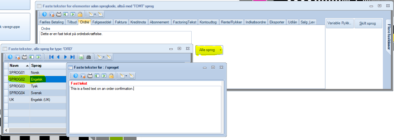 Det er vigtigt at vide, faste tekster også arbejder med de opsatte sprog i KeyBalance. I ovenstående billede fremgår teksten kun på ordrer, der IKKE er påsat noget sprog.