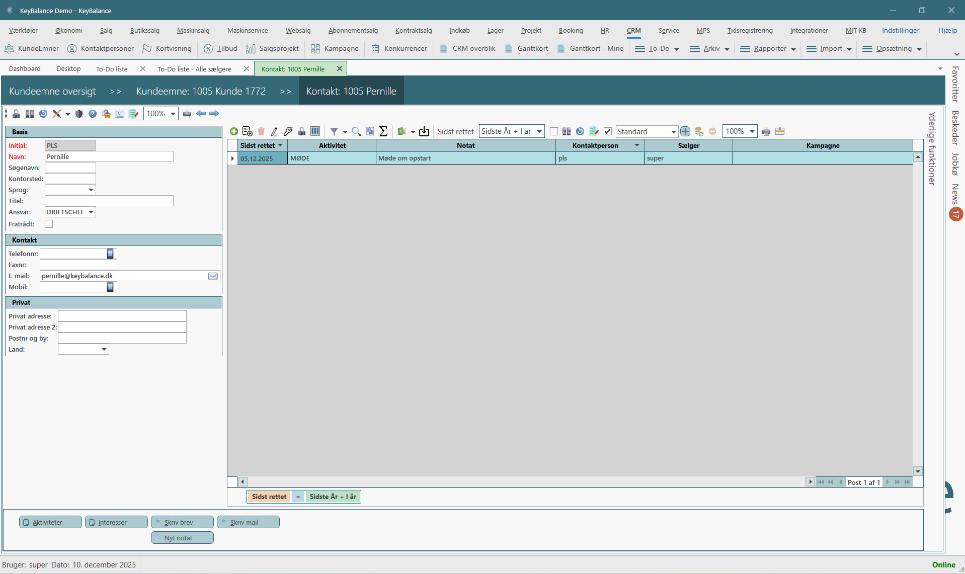 CRM → Kontaktpersoner → (vælg kontaktperson)