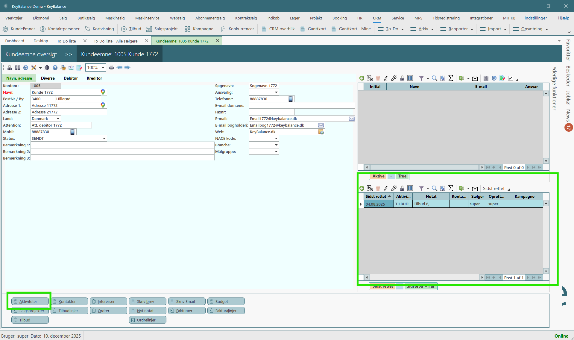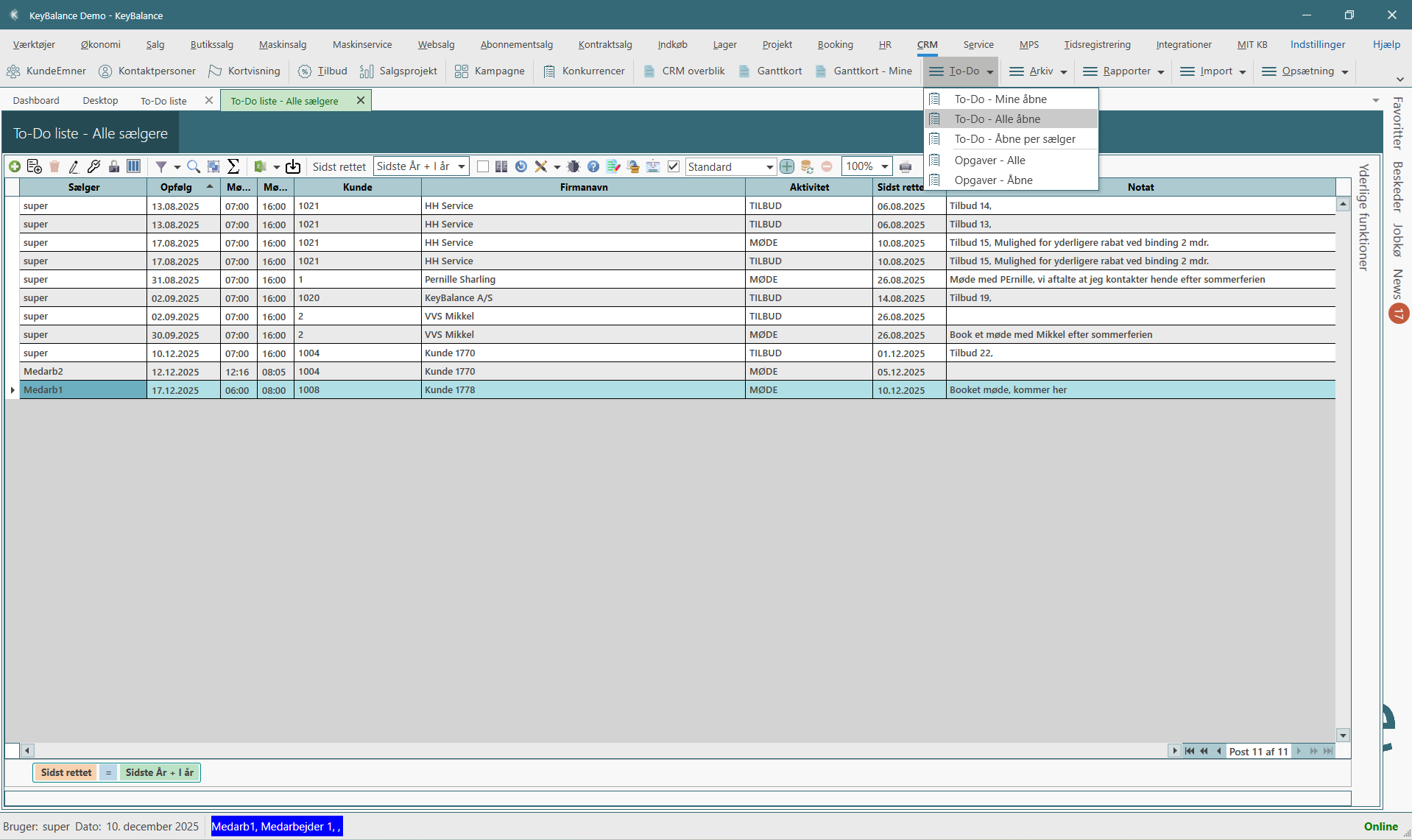 Kundeaktiviteter og To-Do’s i KeyBalance udgør fundamentet for den daglige opfølgning på kunder, salg, support og interne opgaver.