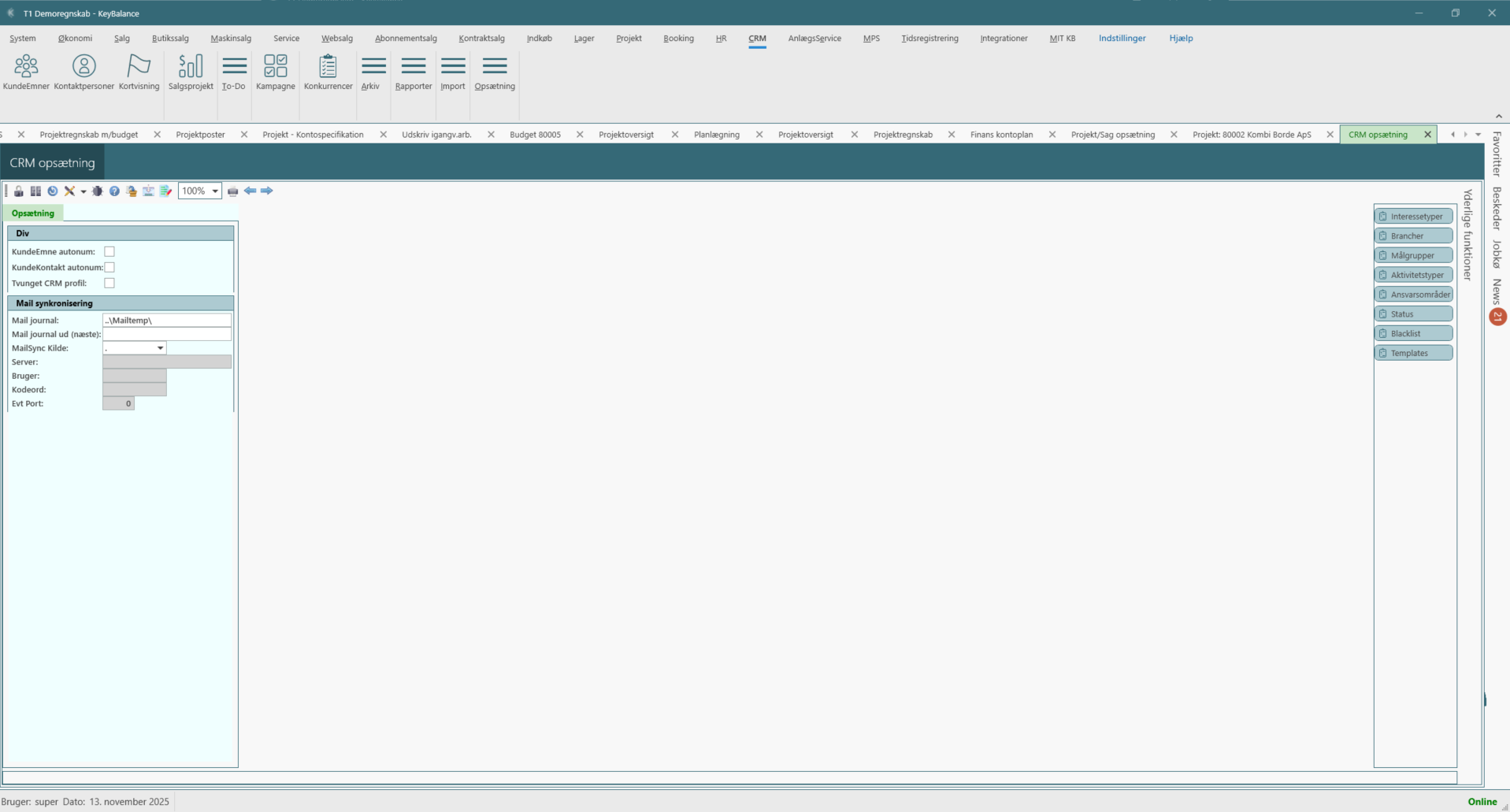 Denne guide beskriver, hvordan du opsætter CRM-modulet under CRM → Opsætning, og hvordan felterne bruges i KundeEmner, kampagner og salgsprojekter i KeyBalance.