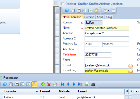 Hvis fx kunden er sat op til bruge en bestemt email på debitoren, men han siger: "jeg skal have tilsendt det på en separat e-mail", kan man opsætte det som vist nedenfor.