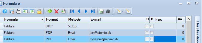 Her vælger du metoden for afsendelsen eller udførelsen. De mest brugte er e-mail, StdEDI og Printer, så det er dem, vi løber igennem. -