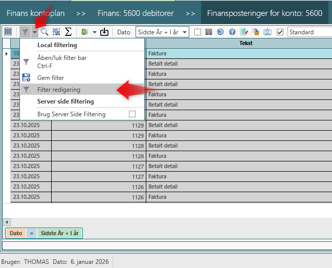 Åben filter menupunkterne op og tryk på "Filter redigering"