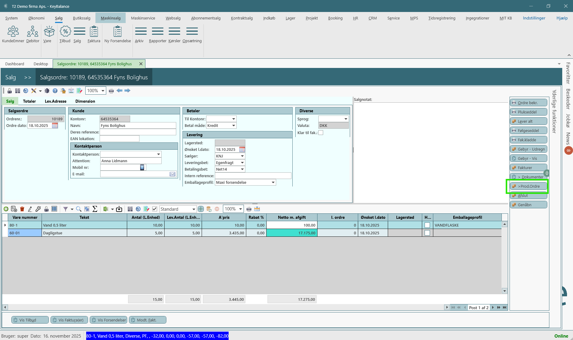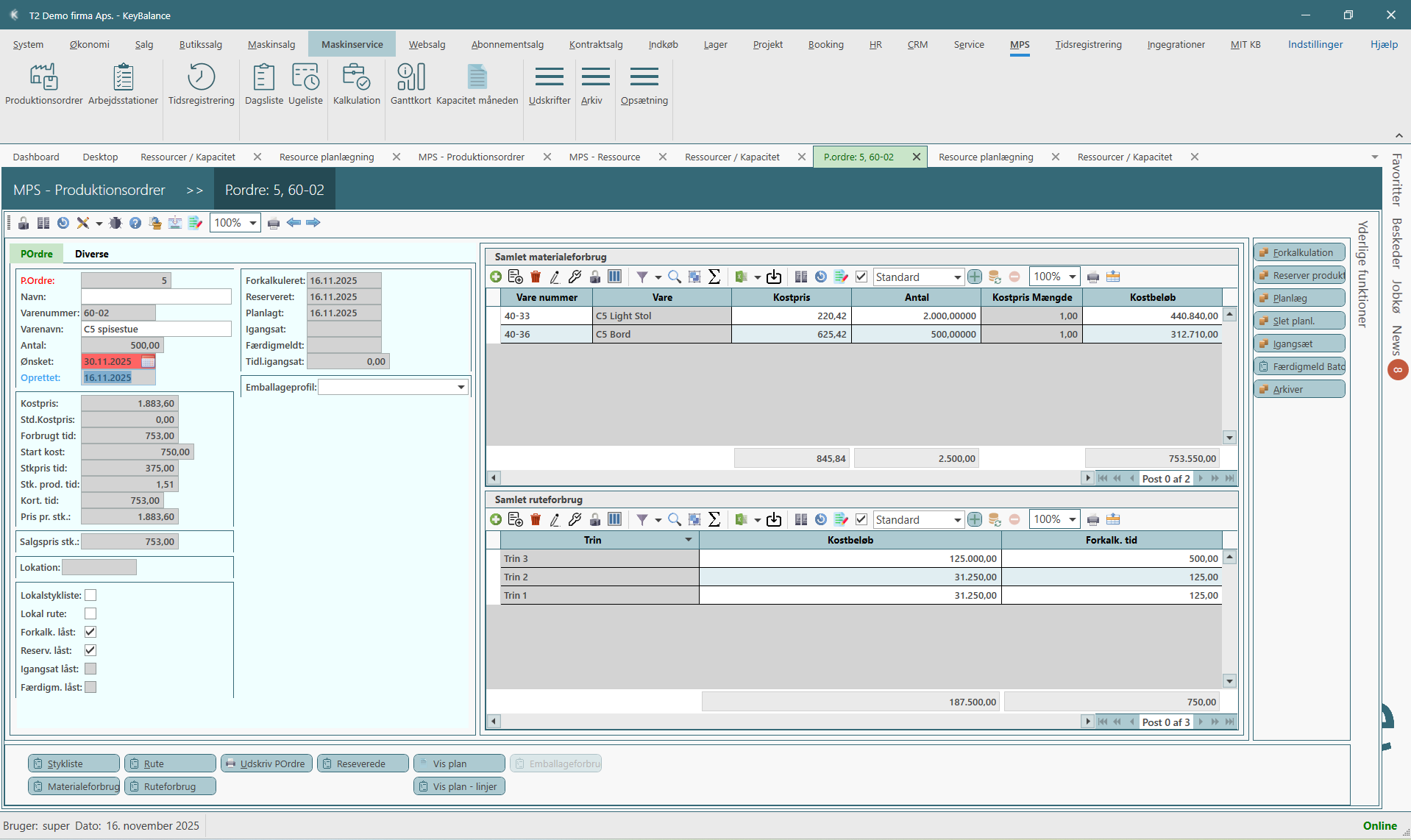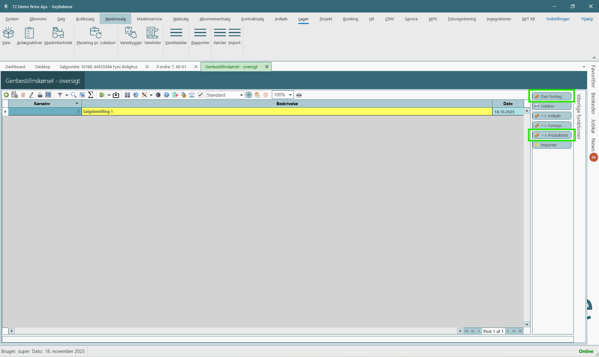 Produktioner i KeyBalance kan oprettes automatisk fra en salgsordre, direkte i MPS → Produktionsordre, eller via genbestillingsforslag når en vare mangler.