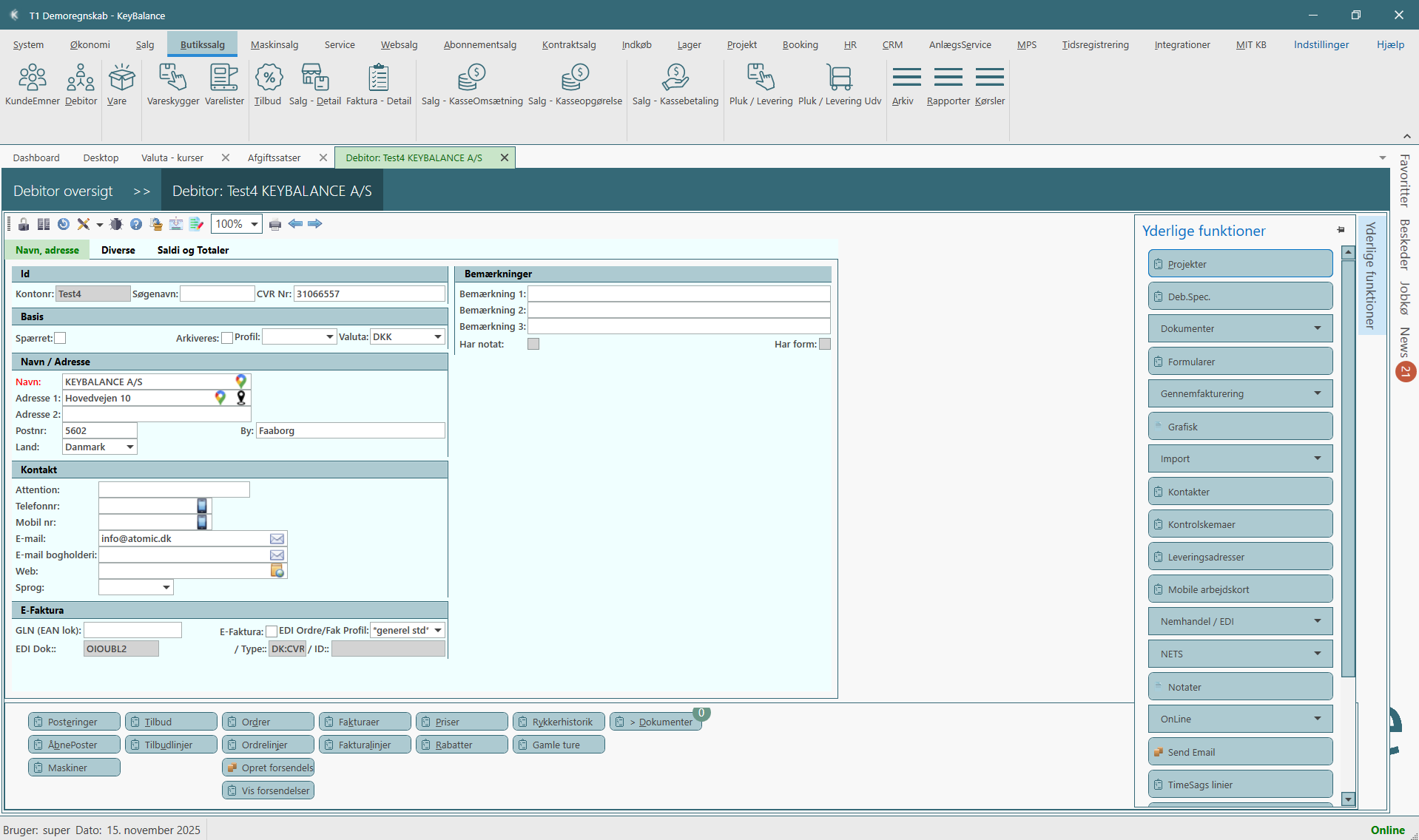 Stamdata for debitor/kunde er fundamentet for alt salg, fakturering og kundestyring i KeyBalance.